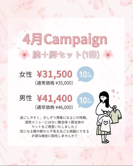 今月は通常メニューにはない腕全体と脚全体のセットをご用意いたしました🌸
